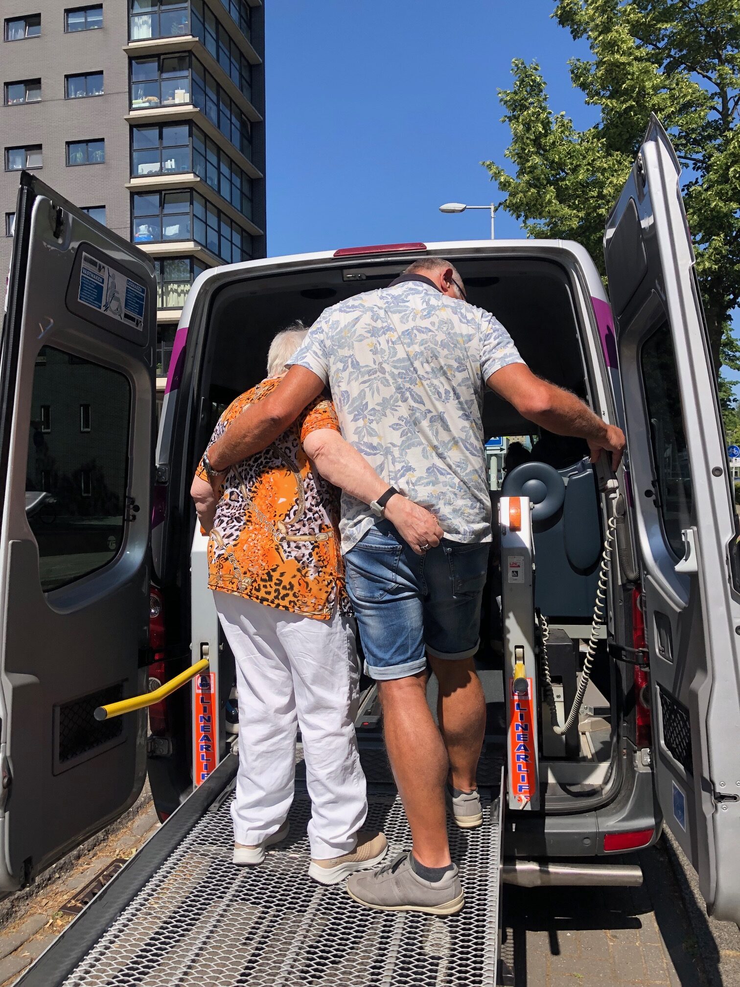 Als chauffeur bij de Dagbesteding begin je de dag met een kopje koffie. Met de medewerker bespreek je welke deelnemers je op kunt halen. Je haalt hen thuis op en je brengt ze ’s middags weer naar huis. Alle deelnemers wonen in Amsterdam Noord. De meesten nemen een rollator mee en er is een enkeling die in een rolstoel meerijdt. Een aantal van hen hebben beginnende dementie.