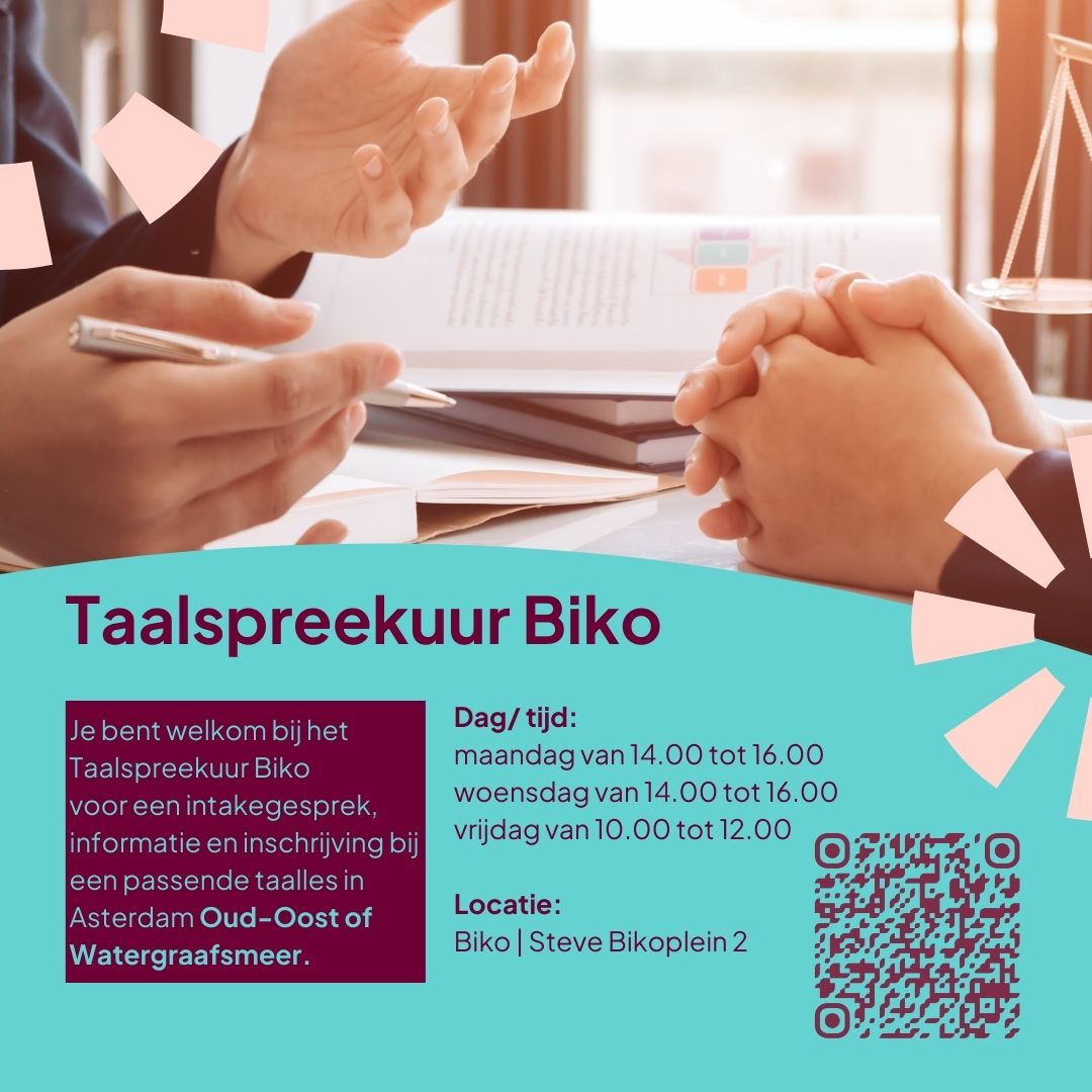 Het Taalspreekuur is een laagdrempelig inloopmoment waar (anderstalige) Amsterdammers informatie krijgen over taallessen en worden verwezen naar een passende gratis Nederlandse les in Oost.