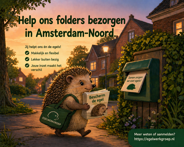 Help jij de egel? Word folderbezorger voor de Egelwerkgroep!De egel heeft het moeilijk. Steeds minder egels vinden een veilig thuis in onze tuinen. Maar samen kunnen we daar verandering in brengen!